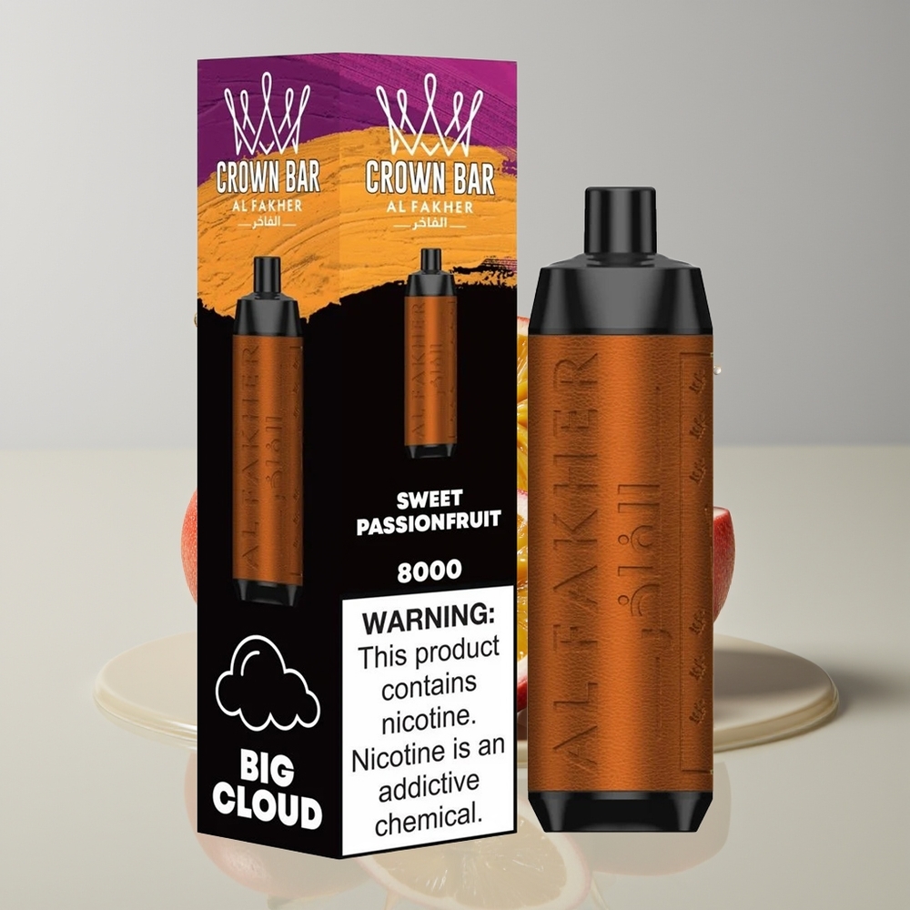 Australia Wholesaler Al Fakher Crown Bar 8000 Crystal 18ml Sweet Passionfruit USB-C 600mAh 5mg Disposable Vape