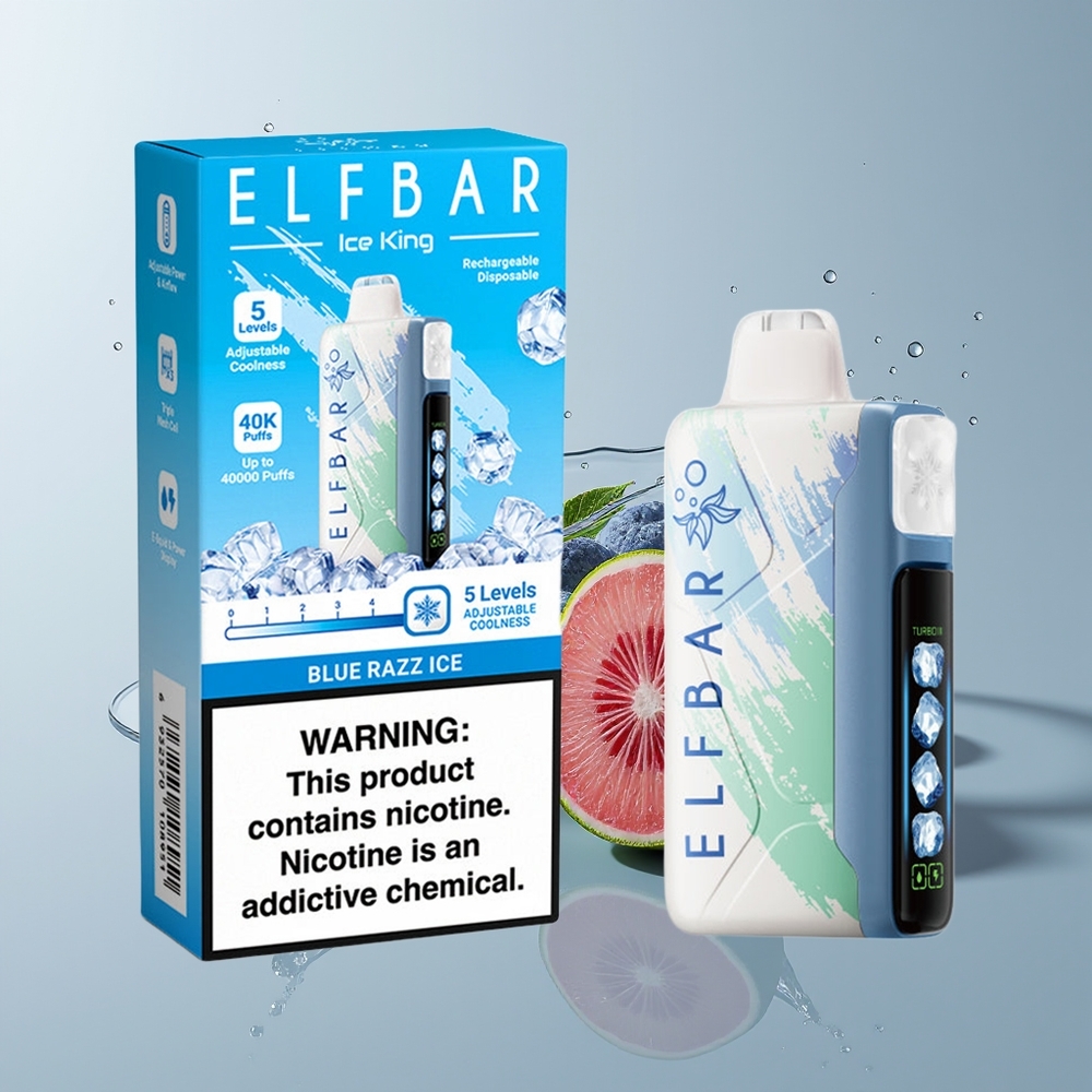 Australia Wholesaler Elf Bar Ice King 40000 Puffs Blue Razz Ice Rechargeable Dual Airflow LCD