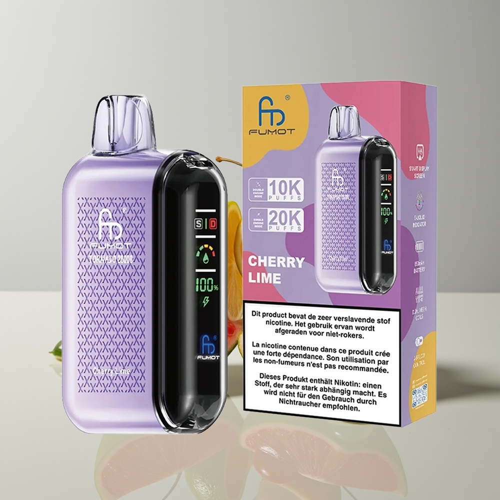 Australia Wholesaler Fumot Tornado 20000 Puffs Cherry Lime Dual Mesh 20ml Rechargeable Display Airflow 2%