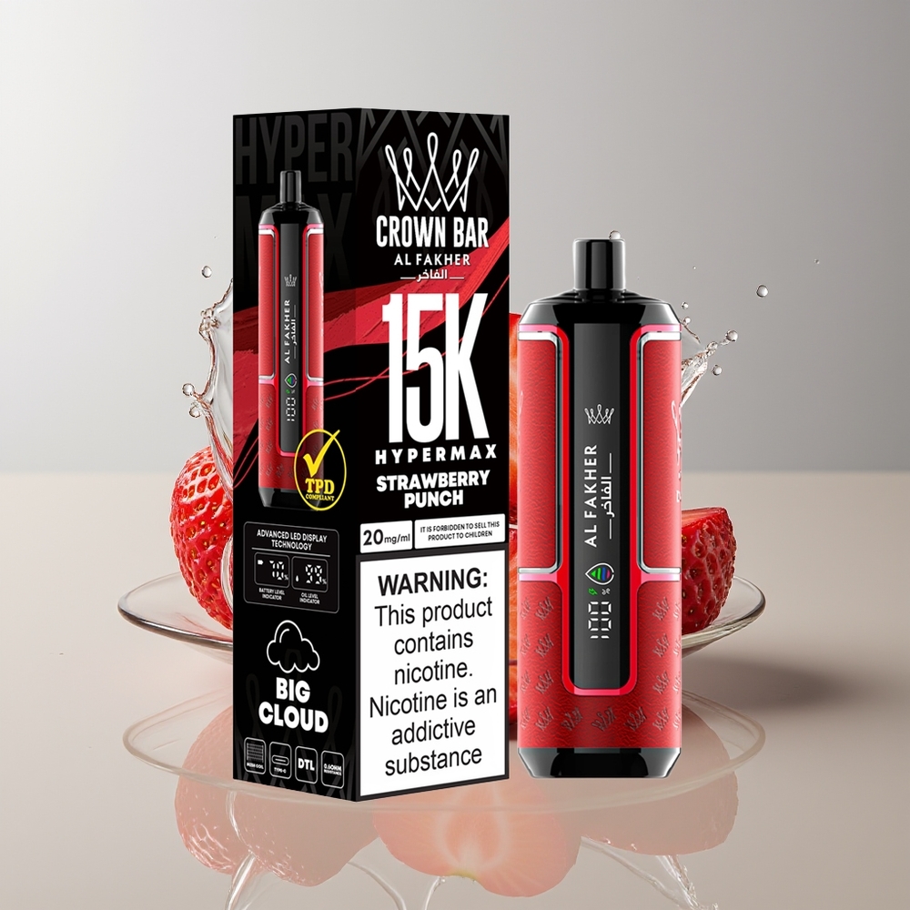 Australia Wholesaler Al Fakher Crown Bar 15K Hypermax Strawberry Punch 22ml 600mAh Type-C DTL 6mg